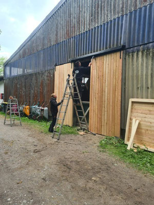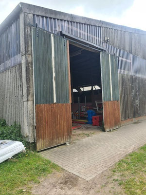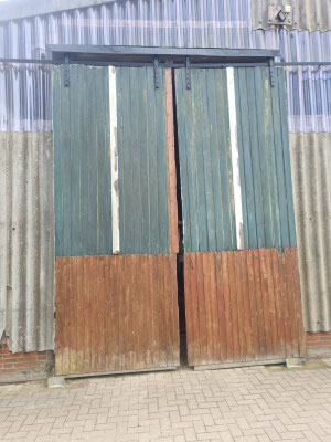 Die Hallentore der 1978 errichteten kleinen Reithalle sind in die Jahre gekommen und wurden mit